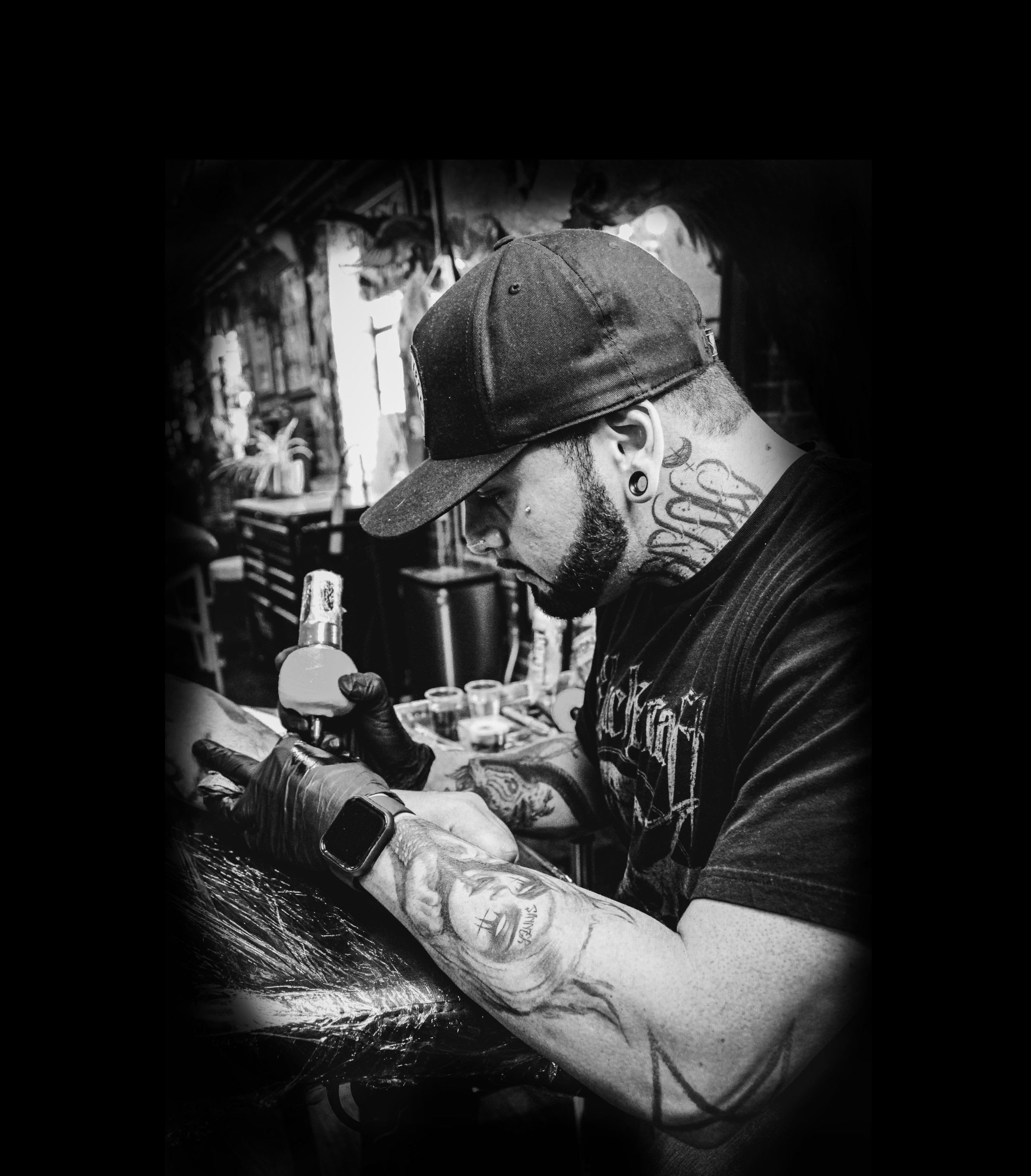 Hello, my name is Devin. I’ve been tattooing professionally since 2014, specializing in black and gray realism portraits, gothic realism, bold blackwork, and finely detailed micro realism, with a refined focus on composition, contrast, and meticulous detail. My work is rooted in a dark, dramatic aesthetic, emphasizing depth, contrast, and presence. I’m intentional about creating custom pieces that stop people in their tracks—tattoos that feel powerful, distinctive, and far from ordinary. If my work resonates with you and you’re interested in collaborating on something truly unique, feel free to send me a DM. Let’s create something unforgettable.